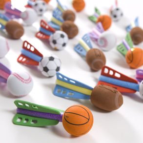 Sports Party Favors for all your Guests! Complete any sports party or banquet with the perfect sports party favors. The mini sports ball missiles make a great end of the year gift for any sports player. 24 missile balls per package. Assorted football, baseball, basketball and soccer missiles. 4" long and 1 1/2" wide at widest point. Foam missile balls. Sports favors and gifts are a great addition to any end of the year banquet or sports party. These sports toys and favors are perfect for all the sports fanatics at your party, and make great give a ways at your next sporting event. Part of Favors, Toys, Gifts > Balls > Sports